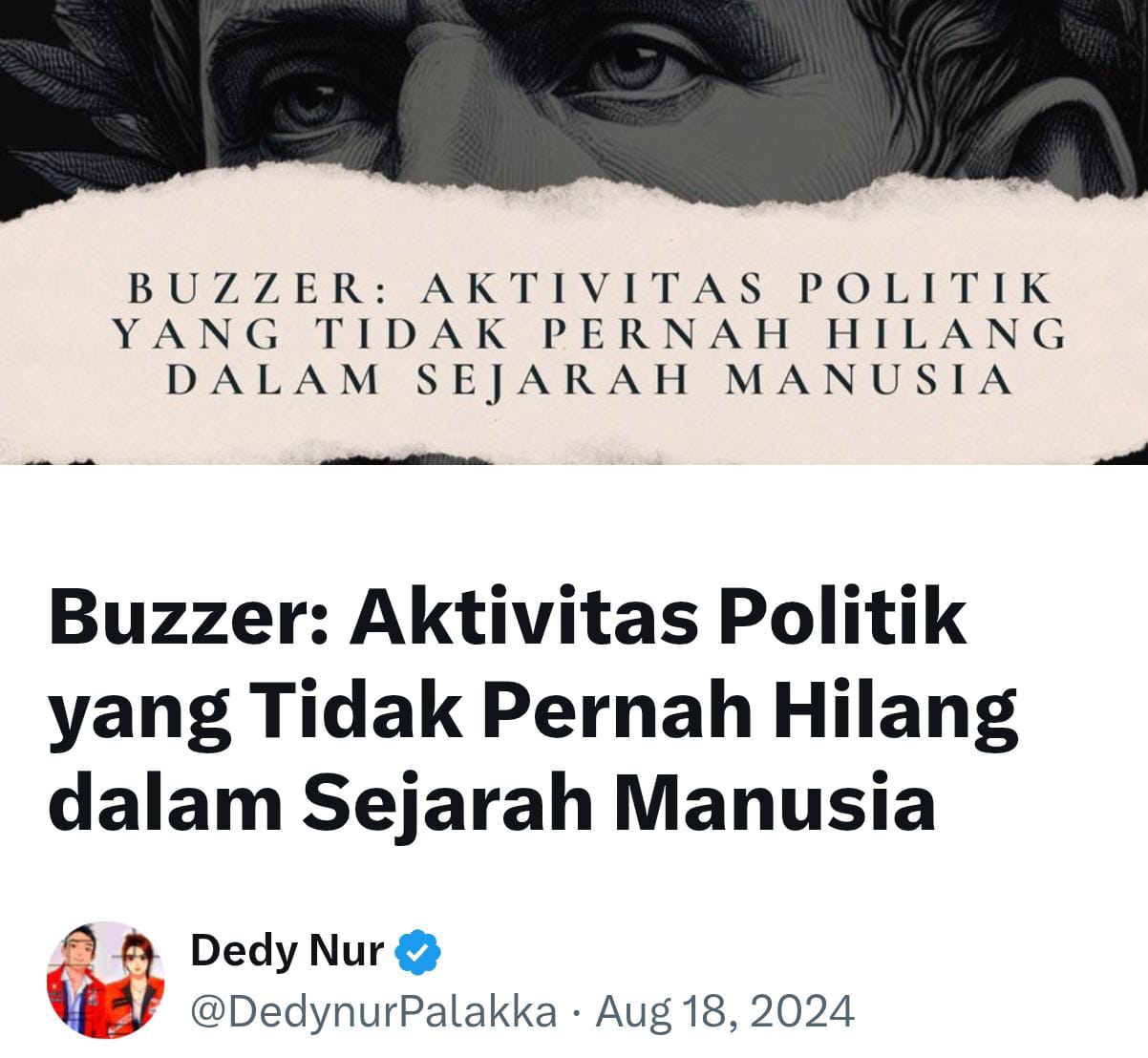 Sejarah menunjukkan bahwa meskipun bentuk dan metode yang digunakan oleh “buzzer” mungkin berubah seiring waktu, esensi dari aktivitas ini tetap sama. Penggunaan pengaruh dan propaganda untuk membentuk opini publik adalah aktivitas politik yang tidak pernah hilang dalam sejarah manusia. Dari Julius Caesar hingga era media sosial saat ini, para pemimpin dan aktor politik terus menggunakan cara-cara ini untuk mencapai tujuan mereka. Selama ada pertempuran ide dan persaingan kekuasaan, aktivitas seperti buzzer akan tetap menjadi bagian integral dari lanskap politik kita.